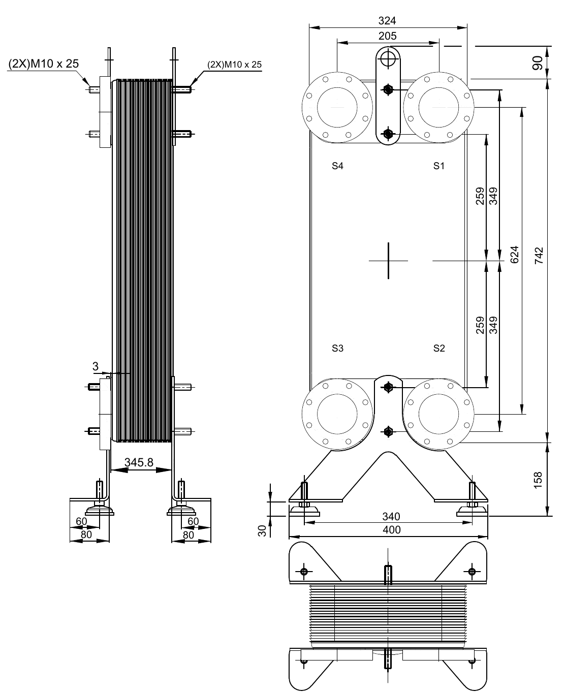 Rysunek wymiarowy CB200-100L z izolacją (CPF,CPF)