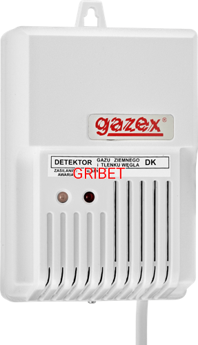 DK-12.Z Gazex - Domowe detektory gazów typu DK-nn służą do ciągłego monitorowania obecności gazów wybuchowych, tlenku węgla lub freonów w pomieszczeniach mieszkalnych i pomocniczych, zagrożonych emisją tych gazów. Wykrycie niebezpiecznego stężenia gazu sygnalizowane jest włączeniem optycznej i akustycznej sygnalizacji alarmowej oraz aktywowane są odpowiednie wyjścia alarmowe. Detektory wyposażono w wymienny moduł sensora, co gwarantuje prostą i tanią eksploatację.