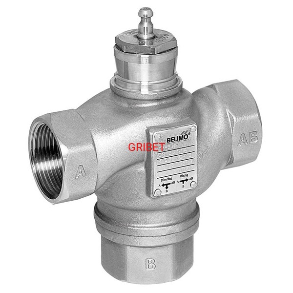Zawór grzybkowy ze stali nierdzewnej, 3-drog., DN 40, Gwint wewnętrzny, Rp 1 1/2", PN 25, ps 2500 kPa, Kvs 25 m³/h, Temperatura czynnika 0...130°C [32...266°F]